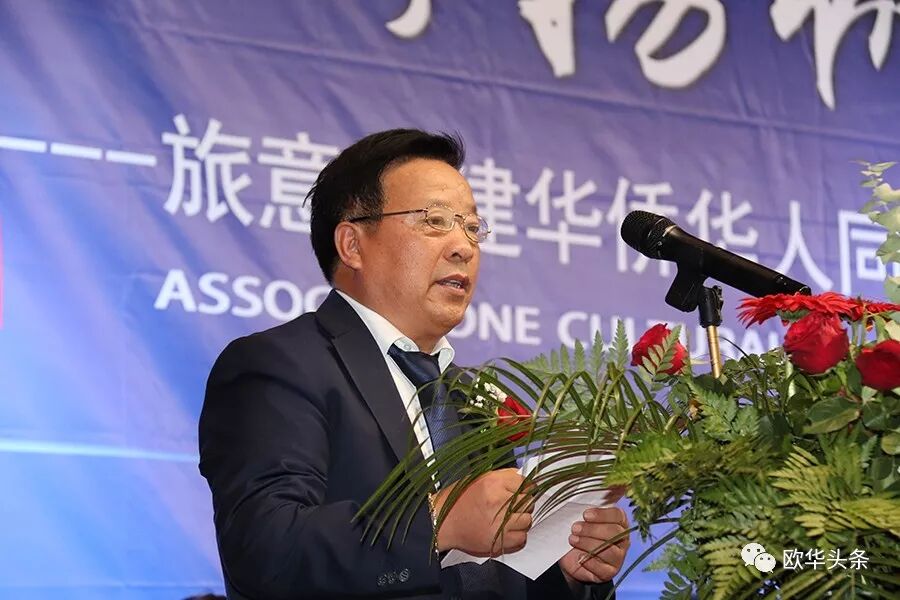 ▲欧洲福建侨团联合总会轮值主席胡建兵致辞
