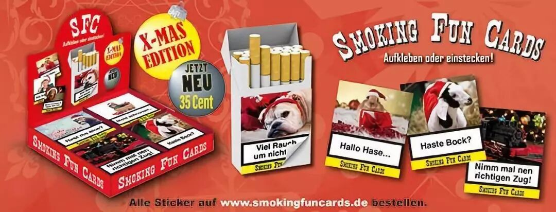 于是,不乏人才的市面上就出现了用来遮挡烟盒上惊悚图案的吸烟幽默卡片(Smoking Fun Cards)!