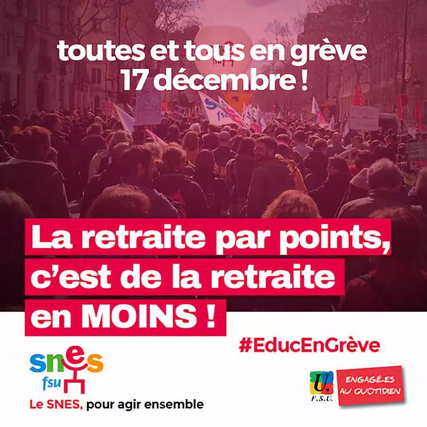 在12月5日至10日动员之后,CGT,FO,FSU和Solidaires工会以及青年组织MNL,UNEF和UNL再次呼吁法国的示威以及全国和全国性罢工。