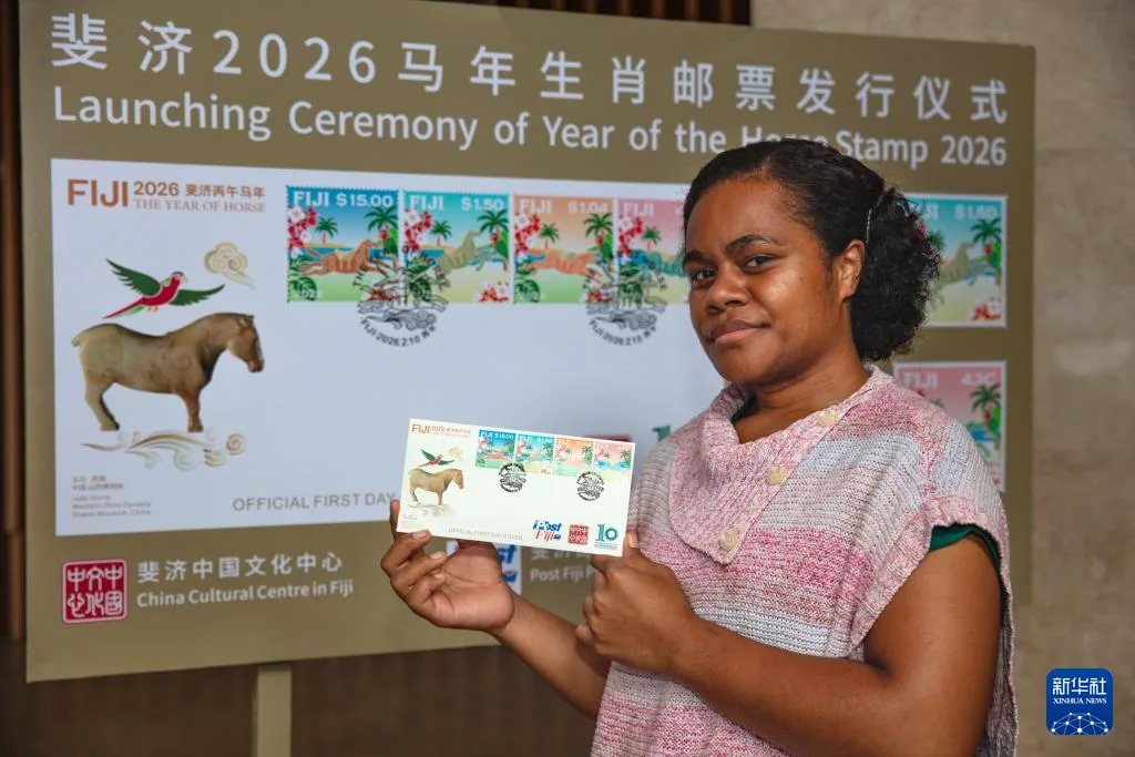 2月10日晚,斐济邮政与斐济中国文化中心在苏瓦市政厅联合发行中国农历马年生肖邮票,共贺春节。此次发行一套四枚邮票,灵感来自山西博物院收藏的西周玉马。