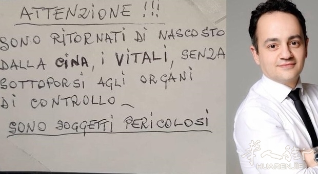 “注意!!!他们是偷偷的从中国回来的,Vitali家人,没有经过有关部门检查,他们很危险”,这是在Monterubbiano和Moresco两地出现的一些传单上写的信息,这上面的Vitali就是Ermanno和他原籍中国的妻子和两名年幼的女儿,他们于1月30日刚从南京回到意大利,南京位于中国东南部,而且距离爆发疫情的武汉500多公里,他大女儿生活在Monterubbiano也在当地上学,而正是在当地学校前面贴的这个纸条,“这是一件非常悲伤和严肃的事情,超出了容忍的范围,特别是因为这事情中有孩子”,该名男子说道,他从2006年开始就一直在意大利和中国两地来回生活,他在那边是Faam商业方面的亚洲负责人,因为中国政府的决定延长工厂和学校的假期,因此这家人,而且现在都还很健康,经过Monterubbiano企业的同意后决定回到意大利。