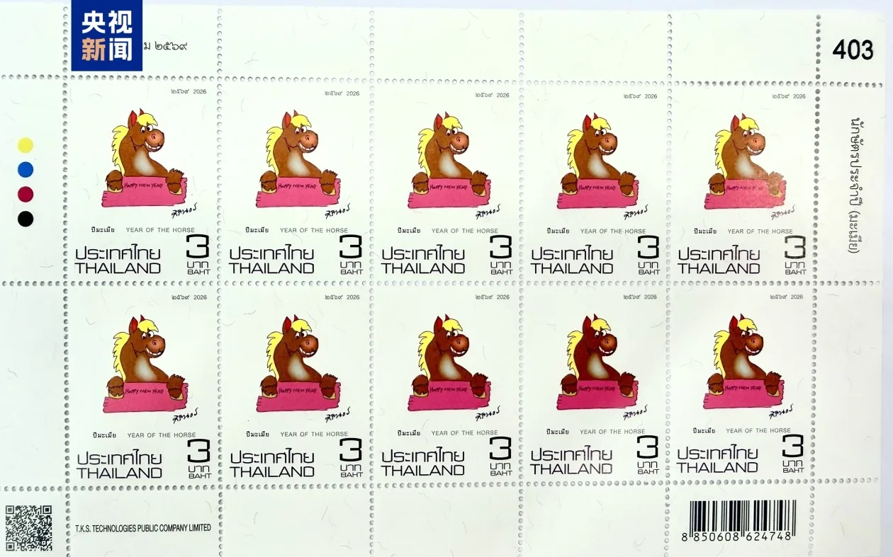 邮票设计延续了诗琳通公主擅长的喜庆吉祥又充满童趣的创作风格,融汇了中国传统文化与泰国艺术表达,传递了“马”这一生肖的象征意义,即自由奔放与勇往直前的精神,寓意迎接充满力量与希望的新年。小小方寸之间,既是节庆纪念,更是泰中文化交融、文明互鉴的生动缩影。(总台记者 李敏)