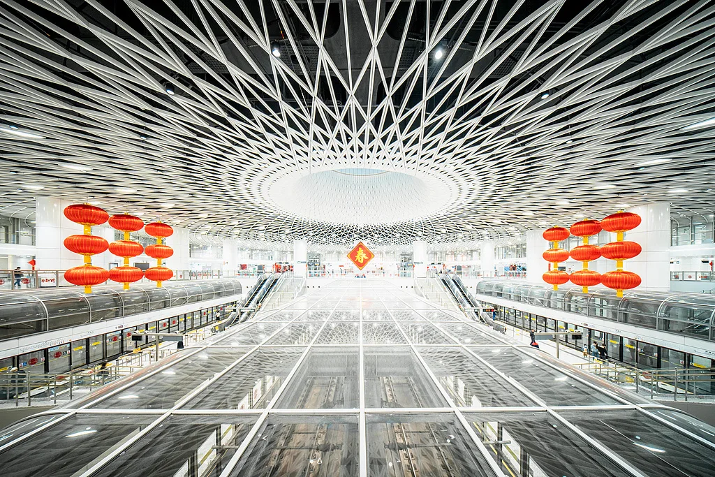 《惊蛰无声》在广东深圳多地取景拍摄,预告片发布以后,作为影片核心取景地之一的深圳岗厦北地铁站,凭借极具未来感的空间设计成为热门打卡点。