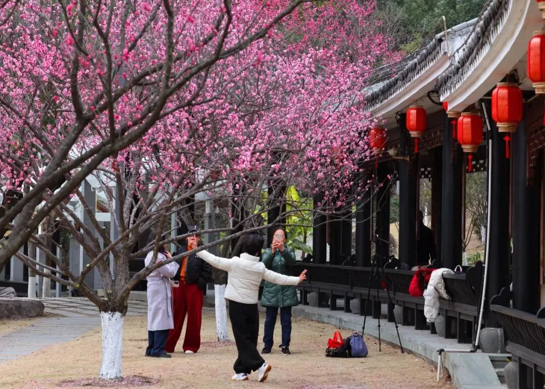 当前园内梅花已进入最佳观赏期,结合温州冬春交际气候特点,花期可持续两周左右。(盛花期受天气影响,请及时关注)。