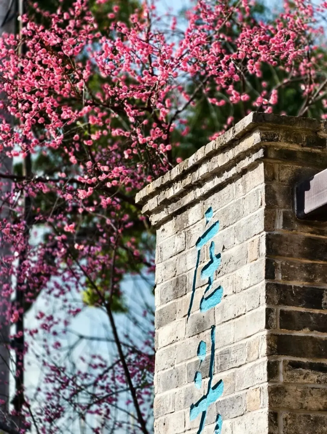长150米的梅花大道是庄头滨水公园的核心景观。两侧梅花蔚然成带,漫步其中,如行在粉雪长廊。疏朗枝干与清雅的花朵,点缀着一旁民国风老门台,在寒风中更添一份时光交错的历史韵味,意境悠远。