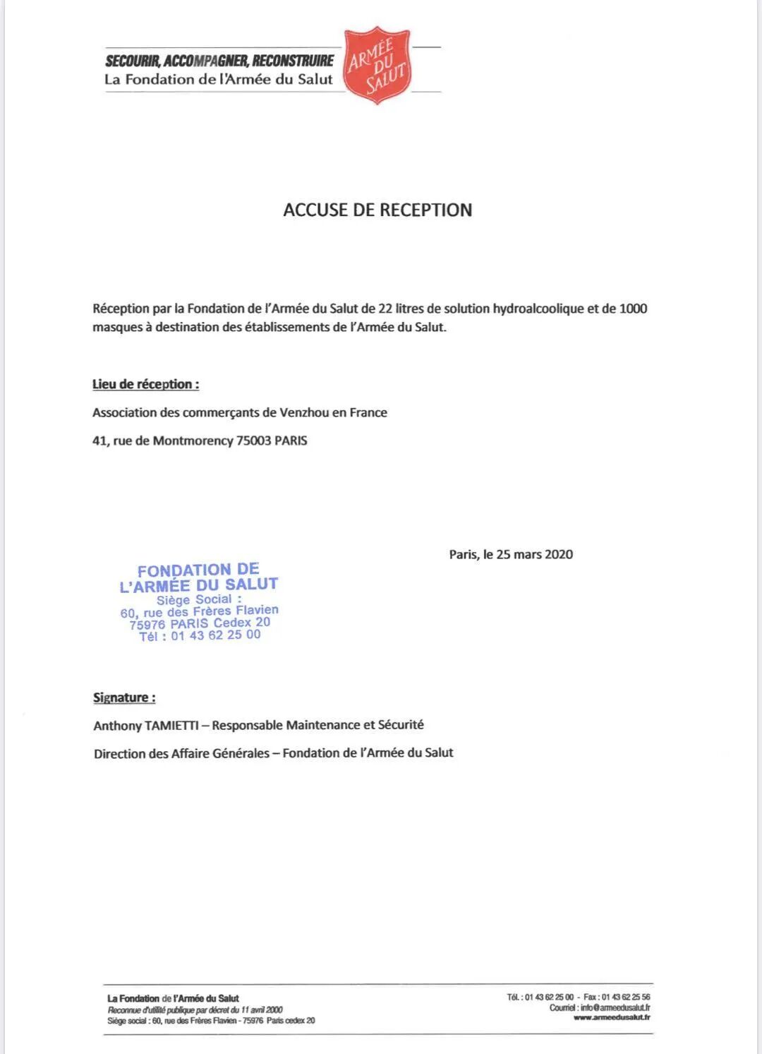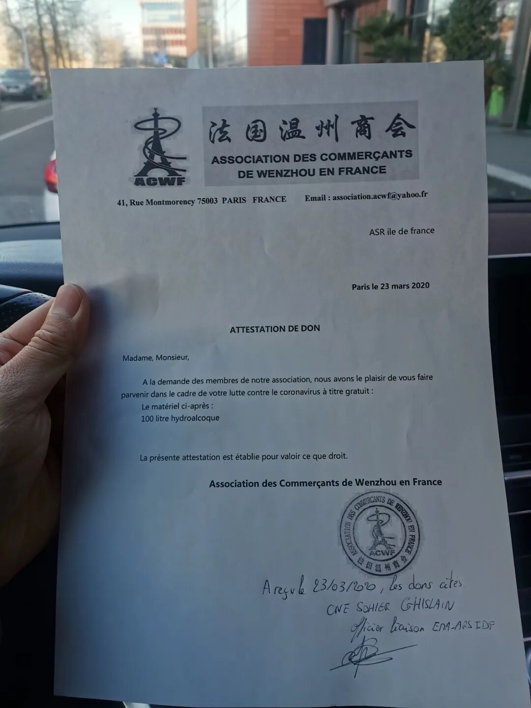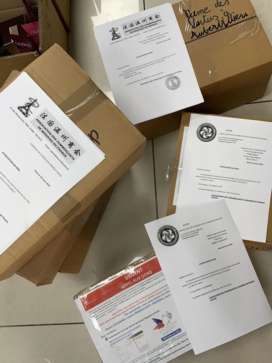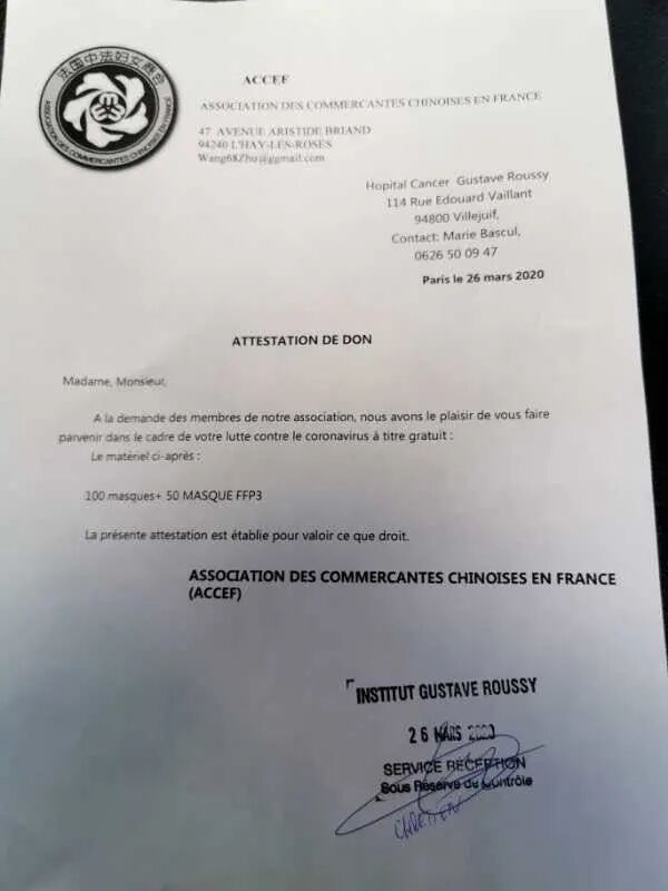 3月20日,法国温州商会率先捐款所购买的10000个口罩被运送到了巴黎圣西门基金会。(点击了解详情:第一批口罩到巴黎的圣西门基金会了!)