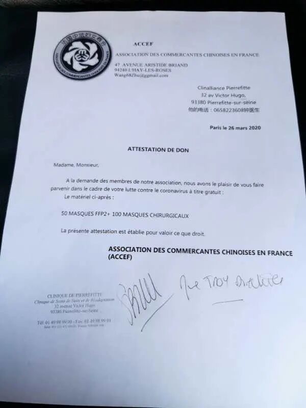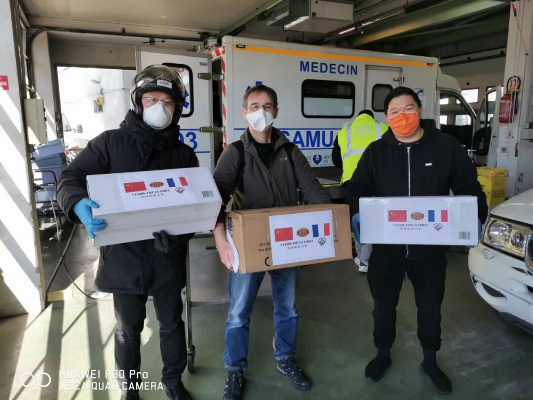 而当国内渐渐恢复,法国却陷入了疫情的泥潭。他们眼看着医疗物资短缺的悲剧在这里上演,立马再次行动,捐款捐物,为这片他们现在生活的土地送上支持和鼓励。