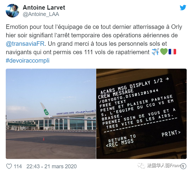 戴高乐机场和主要的地区机场仍接受商业航班。国际航空运输协会(Iata)上周发布的数据显示,由于旨在限制冠状病毒传播的旅行限制,欧洲的航空运输量已下降了近80%。机场仅保持最低限活动,确保引起人们普遍关注的飞行(民警,医疗护送,直升机),形成一个骨架网络以保证需求。其他航班则会完全关闭,日后,机场重新开放,也将面临艰难,缓慢,逐渐的恢复。此外,Transavia航空公司取消直到4月19日的所有航班,这所廉价航空公司法航-荷航集团宣布已遣返21000名法国人。