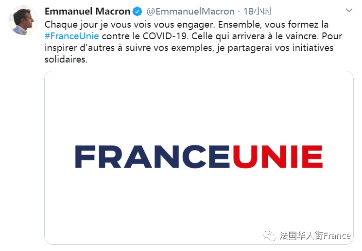 马克龙称以“团结的法国(France Unie)”为口号!这个口号曾是FrançoisMitterrand的标志,而现在把它作为抵抗新冠病毒疫情的口号,这是法国当代历史上前所未有的。