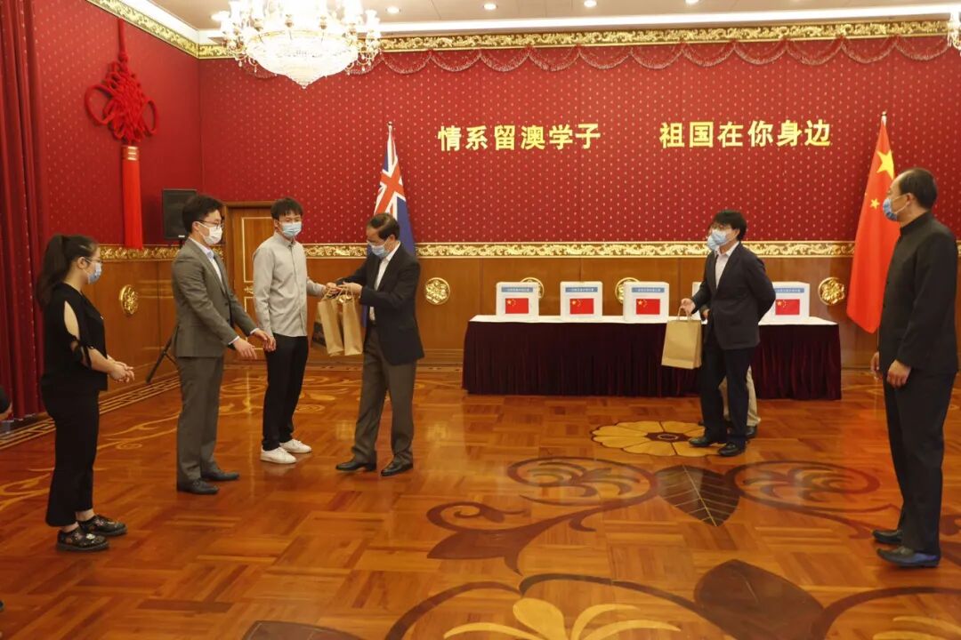 3月27日,驻澳大利亚使馆给中国留学生们发放了“防疫健康包”。驻澳大使成竞业表示,后续还将有更多应急防护物资陆续到位,以保障留澳学子的防疫需求,并叮嘱同学们安心学习,团结互助。