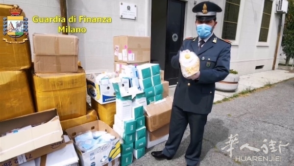 意大利4月17日《华人街》米兰消息:税警突击检查了一家位于米兰边Corsico的华人仓库,查扣了18万5千个口罩,这一大批货都是用于贩卖的,因此违反了刑事和行政方面法律规定。