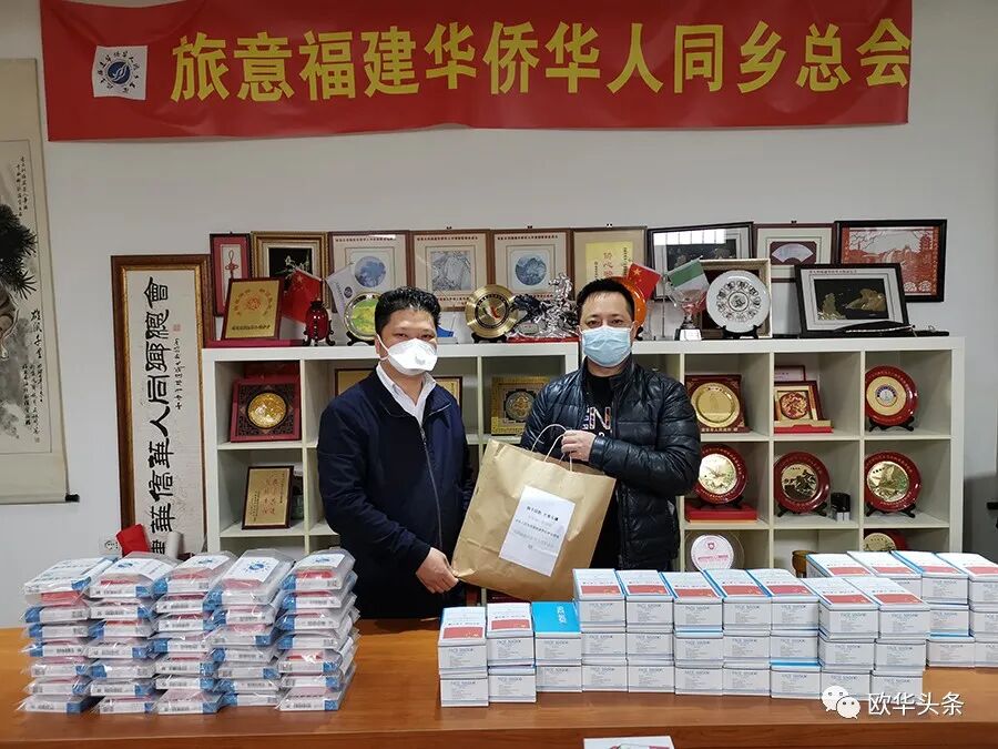 2020年4月21日,意大利普拉托下着小雨、刮着大风,而旅意福建华侨华人同乡总会办公室内却温馨感人,当天下午两点,受中华海外联谊会、中国驻佛罗伦萨总领馆委托,旅意福建华侨华人同乡总会向当地各大商会、中文学校、超市的华人华侨分发了抗疫健康包。其中包括体温枪、外科口罩、防护手套,防治新冠肺炎中成药(由旅意福建华侨华人同乡总会捐赠)等珍贵物资。