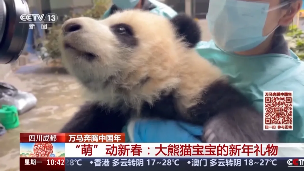 万马奔腾中国年,国宝也来贺新春,一群特别的“拜年团”——2025年新生大熊猫宝宝给全国观众送祝福了。 这些熊猫宝宝出生后一直在不同“熊猫妈妈班”生活成长,此次是它们第一次集体相聚,拍摄全家福。 面对镜头和初次见面的“小伙伴”,它们会兴奋张望、紧张不安,还是松弛自在?