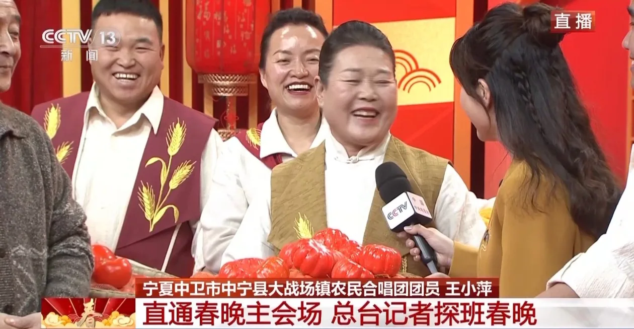 农民合唱团团员王小萍说,第一次登上春晚的舞台高兴又紧张。今年是第一次不在家过年,但能和全国人民一起过年也很高兴。