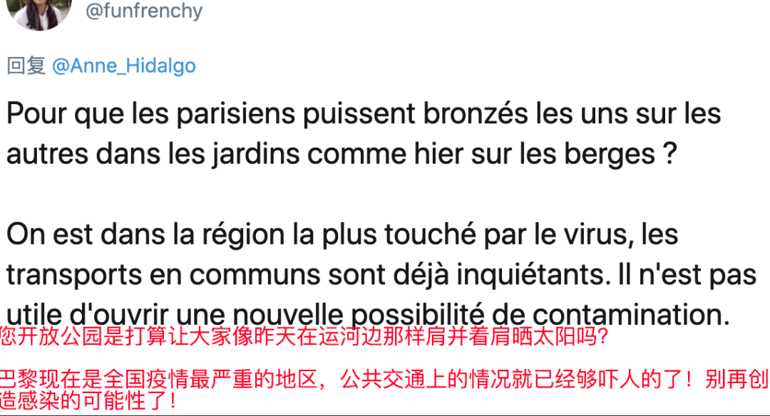 本文图片来自网络资料来源:https://www.lefigaro.fr/flash-actu/deconfinement-anne-hidalgo-demande-la-reouverture-des-parcs-a-paris-avec-port-du-masque-20200512https://www.ouest-france.fr/sante/virus/coronavirus/confinement/deconfinement-anne-hidalgo-souhaite-que-le-port-du-masque-soit-obligatoire-dans-les-rues-de-paris-6832674https://www.huffingtonpost.fr/entry/deconfinement-paris-police-canal-st-martin_fr_5eb9a72ac5b69358ef8a90c0?utm_hp_ref=fr-homepage