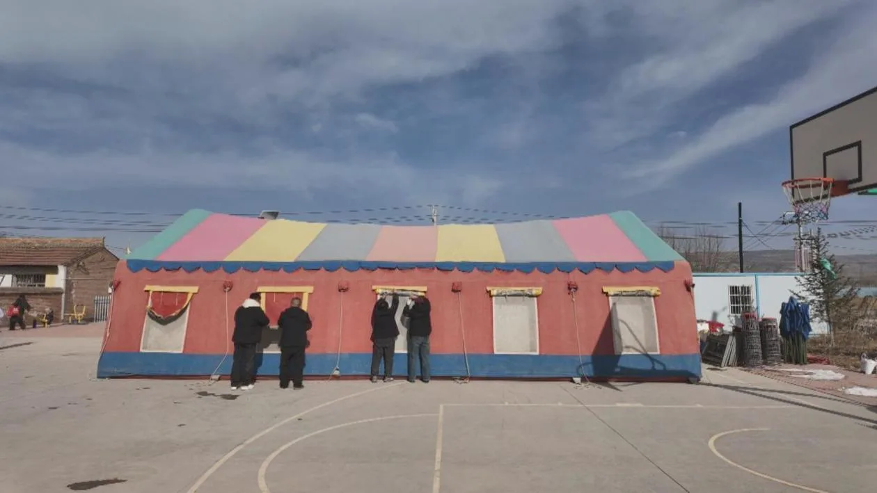 两个小时后,导航准确地把他们带到了许沟村六组的村组活动场。第二天的宴席就在这儿办。水泥地面平整开阔,旁边有一个搭建好的、可以提供电源的门房,炉火烧得正旺,是办席的好场子。