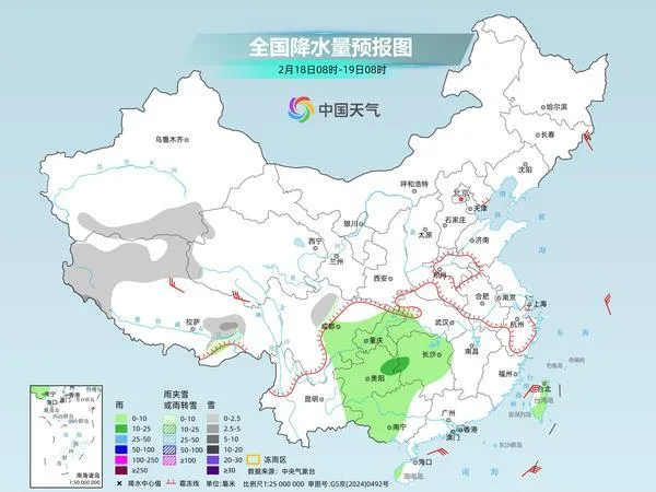 明天,新疆南疆盆地、西藏西部和东南部、青海西部、川西高原北部等地部分地区有小到中雪或雨夹雪。江南西部、西南地区东部、华南北部和西部、台湾岛等地部分地区有小到中雨。
