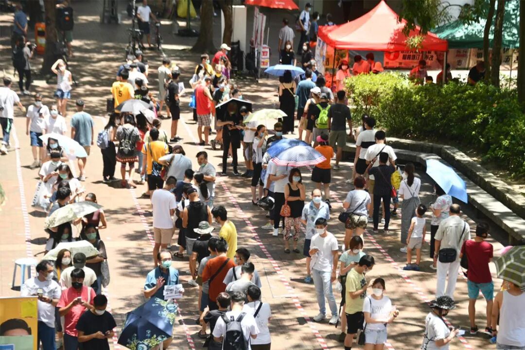 反對派非法“初選”引致人流密集,令染疫風險大增。圖:星島以戴耀廷、黃之鋒為首的反對派一干人等,難道不知道非法“初選”的聚眾行為,會大大增加傳播病毒的風險嗎?但是為了他們自己的政治利益,反對派就這樣置全港市民的安危於不顧,真是可恨!