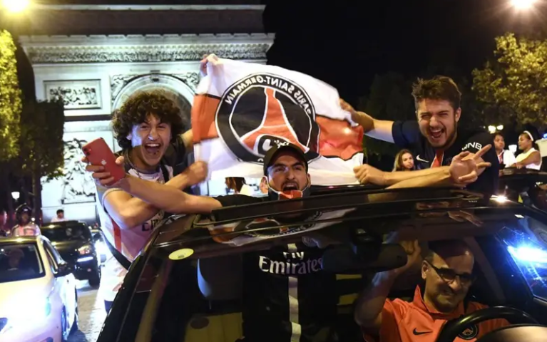 不过在街头聚在一起的人还是不少的,巴黎的香榭丽舍大道又被“占领”。王子公园旁,数千名球迷点燃了烟花唱着胜利歌谣庆祝。 警察投入了大量警力加以干预,事实上发展到后来庆祝已经变味了,甚至一群人围住警车开始砸车。警方驱散了暴动的人群,混乱中逮捕了36人。 当然,不同队的球迷之间昨晚也发生了摩擦,在马赛,一名穿着巴黎队球衣的球迷在街头被殴打,随后打人者被捕。