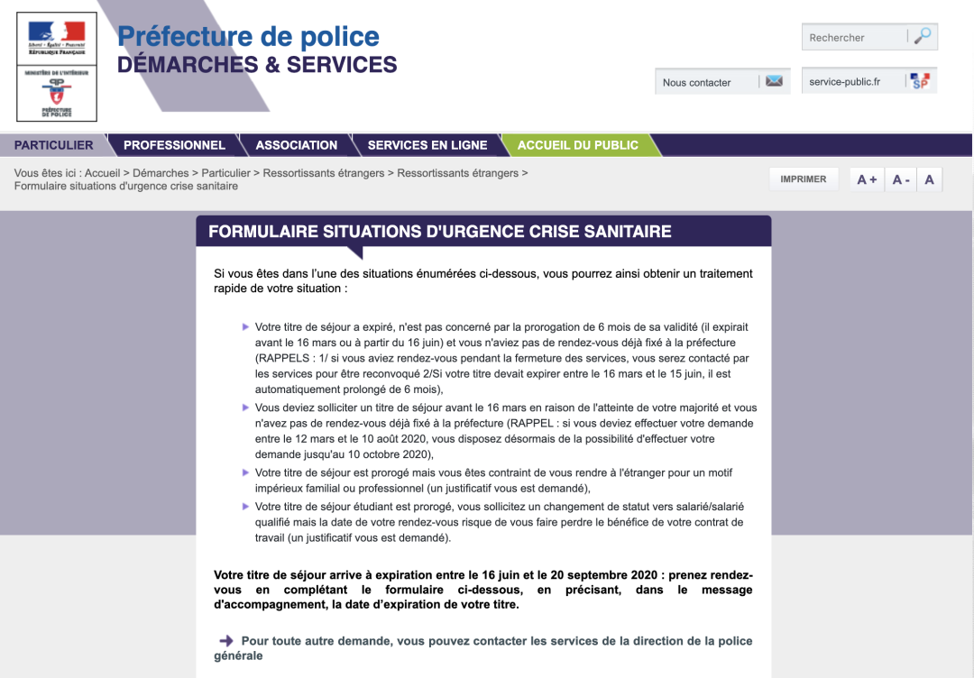 https://www.prefecturedepolice.interieur.gouv.fr/Demarches/Particulier/Ressortissants-etrangers/Ressortissants-etrangers/Formulaire-situations-d-urgence-crise-sanitaire