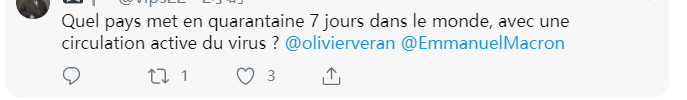 “请问有哪个国家在病毒正爆发流行的时候把隔离时间从14天改成7天啊(前排艾特卫生部长艾特马克龙)”(确实,没谁了)