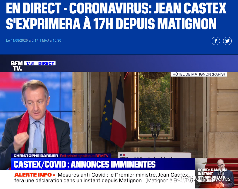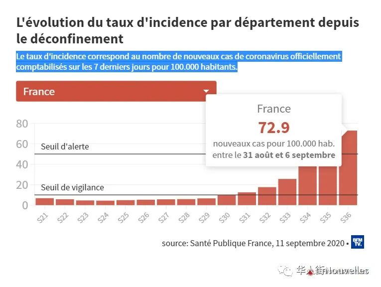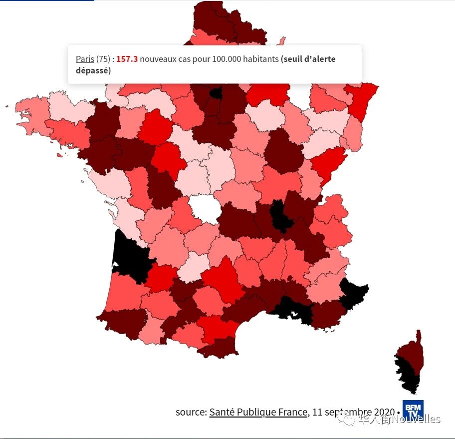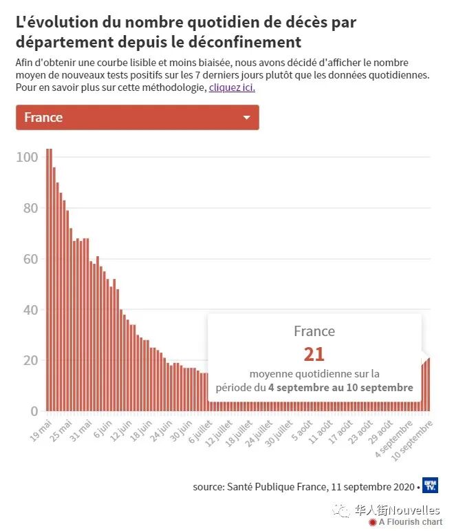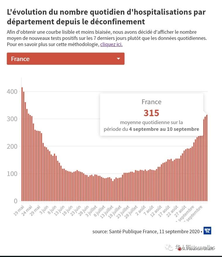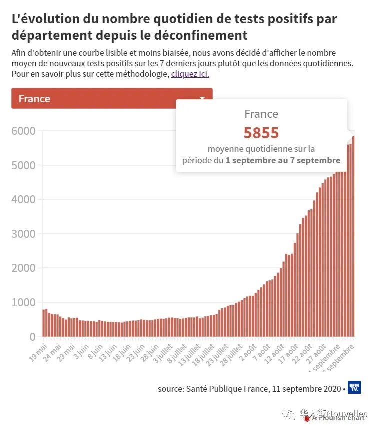 4个月后的9月10日,法国单日新增新冠病人高达9843例。