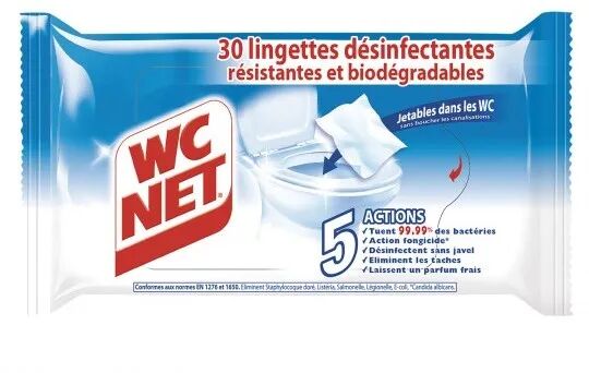 - 除此之外,法国还有一种专门清洁马桶的湿纸巾,此类湿纸巾包装上印有“WC(卫生间)”字样。这类湿纸巾可用于清洁马桶周围、浴缸、水龙头等,可有效控制、减少微生物的数量。如下图: