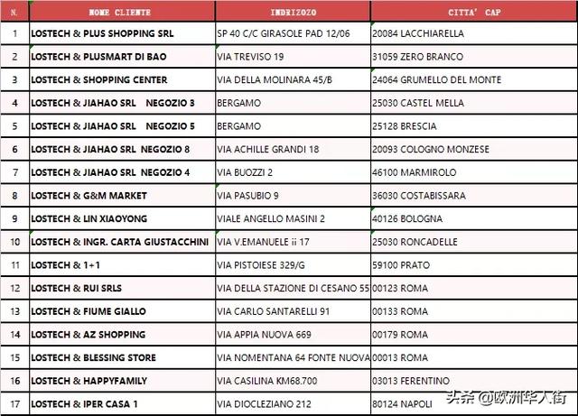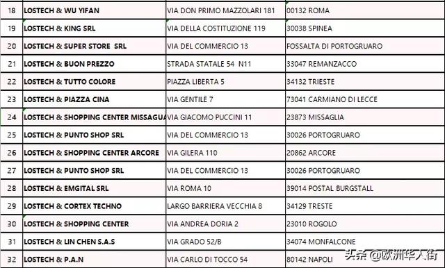 目前Lostech在全意大利已拥有32家门店,具体地址如下,各位街友可就近选择离自己最近的商城进行选购,把自己心仪的国产电器带回家!