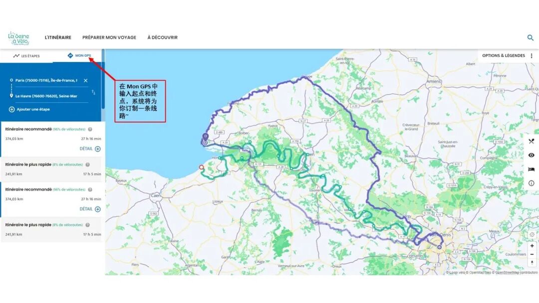 除了沿塞纳河绿道,单纯想骑游法国的小伙伴们还可以利用网站的“Mon GPS”功能,为自己订制一条骑游路线~