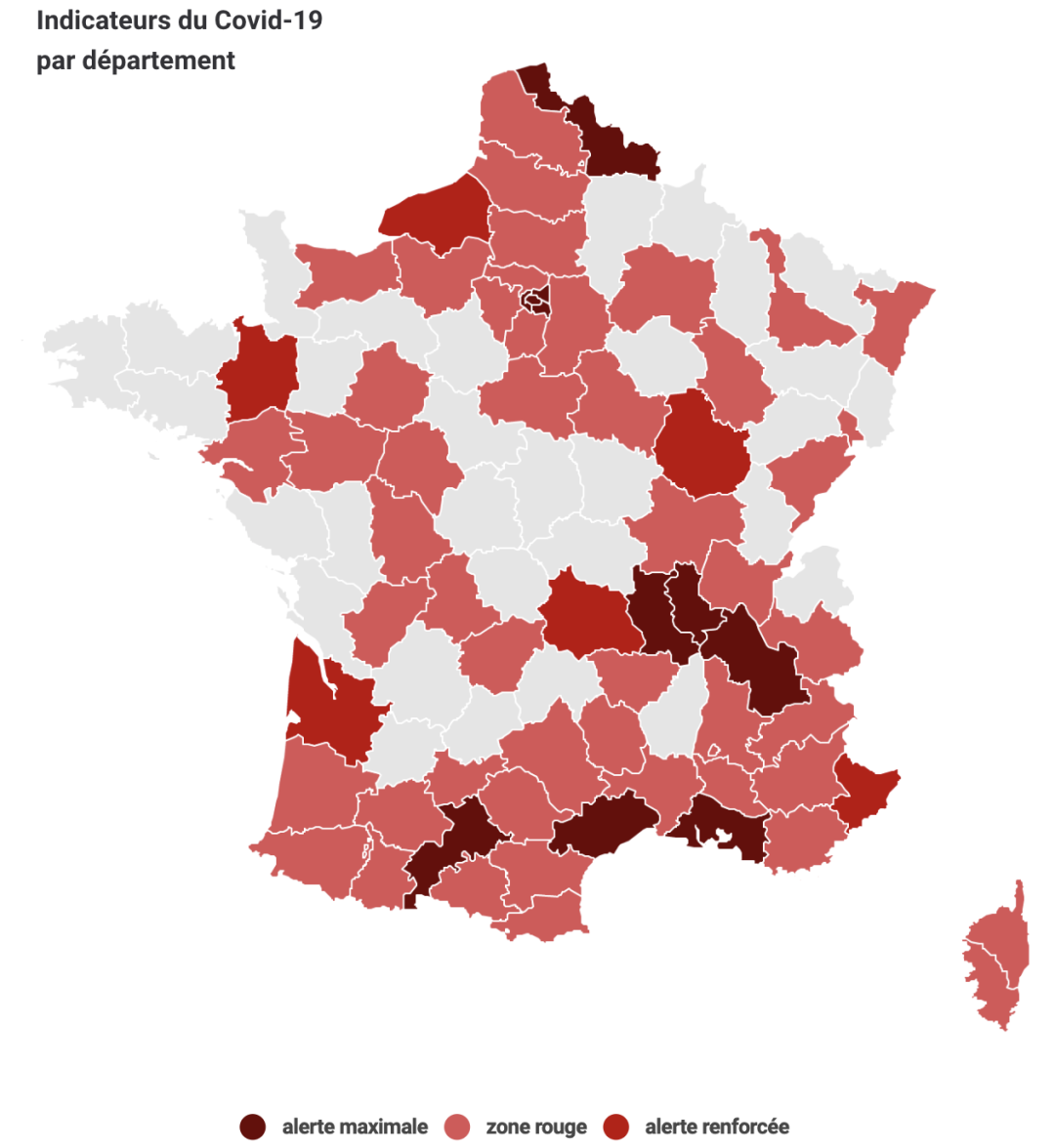 像斯特拉斯堡、第戎和克莱蒙-费朗这些人口稠密的法国大城市,很有可能从本周六开始,就要进入宵禁的队伍当中去了。在这里,小编汇总了一份目前极有可能进入宵禁的省份名单,其中大多数城市的省政府已经决定本周将会进入宵禁,只等今晚宣布了。大家可以看一看,自己所在的省份有没有被囊括进去哦!今晚将进入宵禁的省份名单