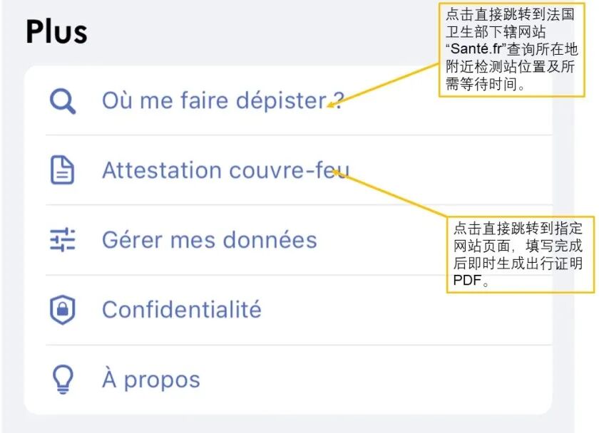 除了以上核心功能,开发人员还为“TousAntiCovid”增设了许多实用小功能: