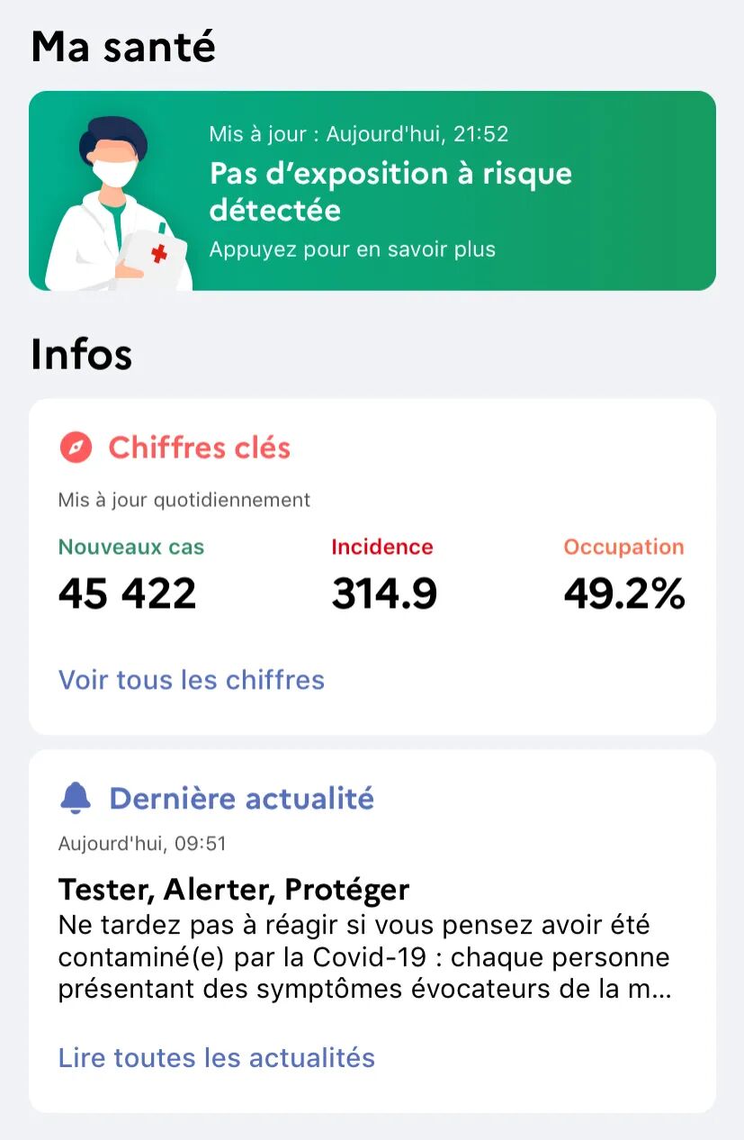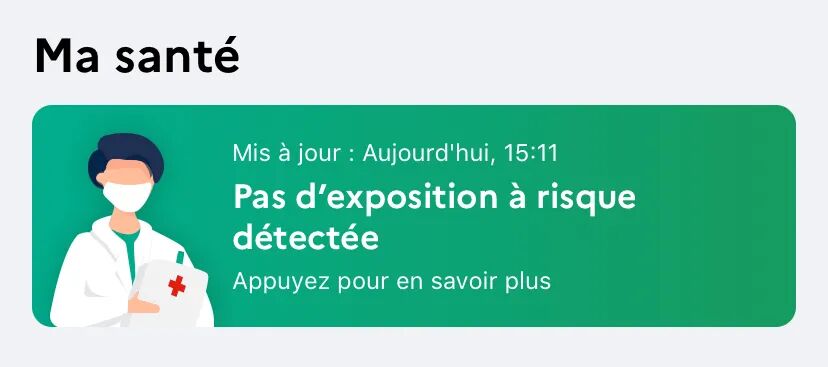 每24小时,“TousAntiCovid”都会更新一次机主过去这一天有没有被传染的风险。