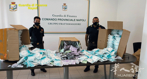意大利《华人街》那不勒斯10月24日消息:在那不勒斯查扣了2万8千个仿冒FFP2口罩,警方在这家华人商店里一共查获6万9千余件不合格产品。