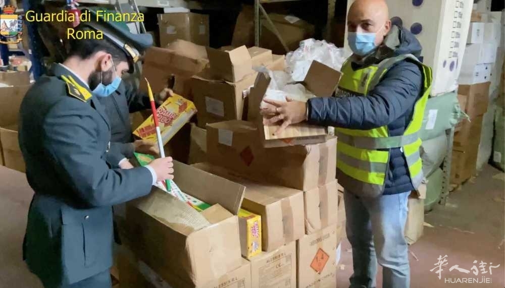 意大利《华人街》罗马12月5日消息:罗马Tor Tre Teste地区一家仓库里查获2吨的“烟火爆竹”,负责人被税警控诉。