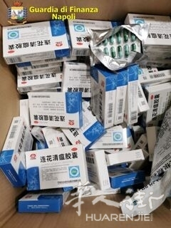 那不勒斯税务警方省指挥部在那不勒斯市Gianturco区查获了144包来自中国的 "冒充 "用于新冠病毒治疗的药品。详细情况是,那不勒斯相关部门税务警察在一个华人美发店里发现了144盒药丸,其中含有3456粒药丸,这些药丸未经任何授权,而且只有用中文文字标注的说明书。
