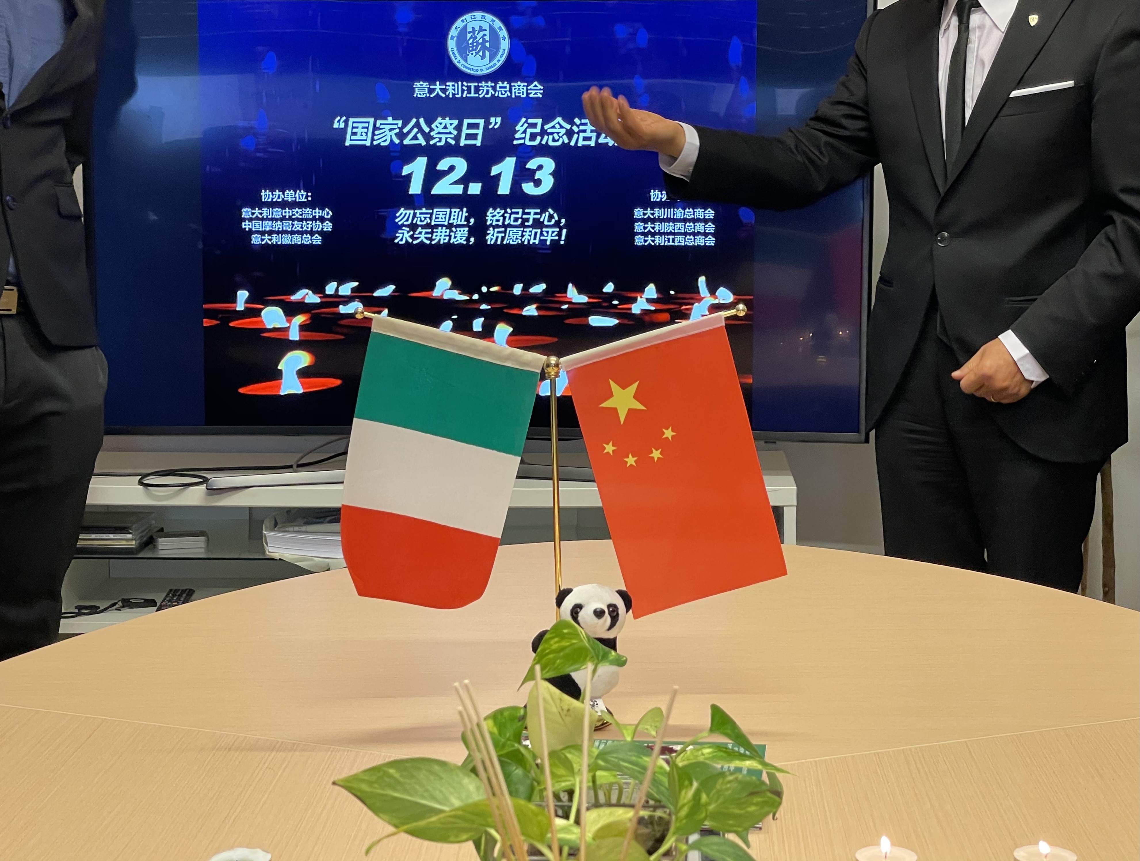 为此,意大利江苏总商会携手意大利意中交流协会联合意大利(江西、川渝、陕西、徽商、摩纳哥中国)总商会共同举办了“国家公祭日”纪念活动。