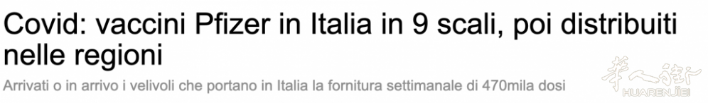 意大利《华人街》消息: 安莎社报道,第二批47万支辉瑞疫苗已经多数运抵意大利主要城市。