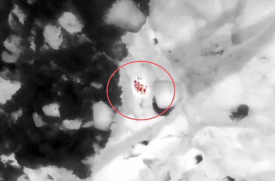 18时许,无人机搭载红外热成像设备升空,在深沟附近的密林间穿梭扫描。随着夜幕降临,深山内无光源、能见度极低,加之气温骤降,救援难度进一步加大,但在热成像画面中,三个微弱热源信号逐渐清晰——被困人员成功被锁定!
