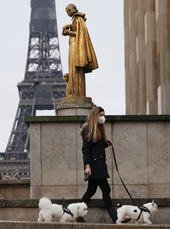 一名戴口罩的女子站在法国巴黎街头。
