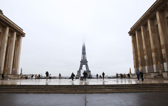 1月27日,一名女子走过法国巴黎埃菲尔铁塔附近的特罗卡德罗广场。(图片来源:本文图片均据新华社)