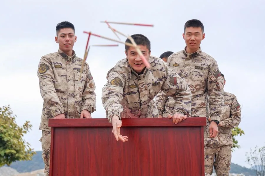 官兵们目光紧紧锁定目标,稳稳投掷