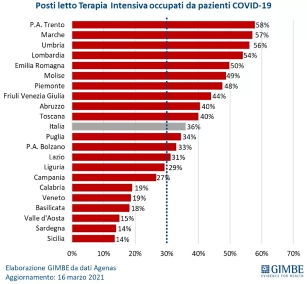 据意Gimbe基金会今天公布的数据,全意各项疫情数据都在上升。其中,全国重症监护病床占用率已超过30%的警戒值(达到36%),且有10个地区已达到或超过40%。