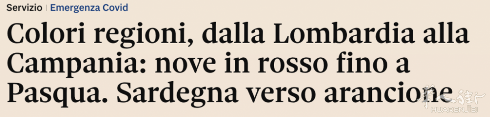 意大利《华人街》消息:财经专报24小时太阳报报道,在意大利本周的疫情划分更新中,9个大区将至少维持高风险红区状态至复活节前。
