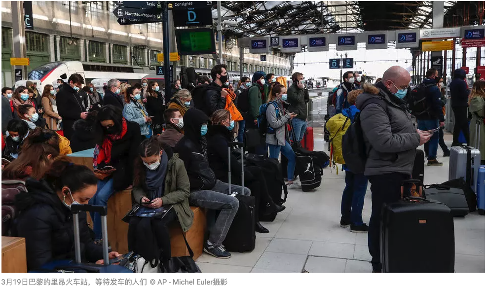 虽然远远算不上严格,但3月19日星期五一早,巴黎各大旅客集散地就爆满,法国国营铁路公司一名发言人表示,周五早上从巴黎前往布列塔尼,西南地区,或者里昂的火车通通满员,从巴黎出发,最受欢迎的目的地是里昂,马赛,波尔多,雷恩和南特。而傍晚时分,巴黎出城的路上已堵起了大约400公里的车流。无法离开首都的人们则选择疯狂购物,巴黎市中心的购物街排起长长的队,就连从明天开始并不会被关闭的超市,也被涌入的人们“占领”。