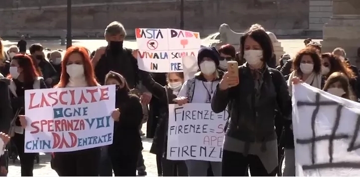 目前,意大利有约2/3的居民(3930万人)被困在“红区”中,各级学校也因此关闭。昨天,罗马、米兰、都灵、那不勒斯等全意44座城市暴发“重返校园”抗议示威游行。