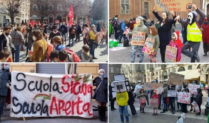 今天,意大利多地举行交通大罢工、外卖员罢工的同时,罗马、佛罗伦萨、米兰、那不勒斯等60座城市还举行罢课活动,从幼儿园到大学的各级师生均抗议远程教育,要求开放校园。