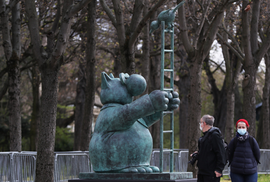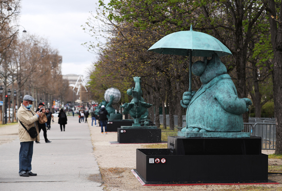 3月26日,20尊2米高的“猫先生”铜像亮相法国巴黎香榭丽舍大街。这是比利时漫画家菲利普·葛洛克知名连环画《猫》中的经典形象。受新冠疫情影响,法国的博物馆、电影院、剧场等公共场所继去年10月底持续关闭,该户外展旨在为疫情中的人们带来开心一笑。