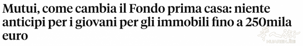 在德拉吉政府推动复苏基金建设后,购房保证基金可以给35岁以下年轻夫妇提供等同于总价100%的购房/装修贷款,换句话说零首付全贷款购房真的有望成为现实,国家将作为担保人来向银行申请贷款。