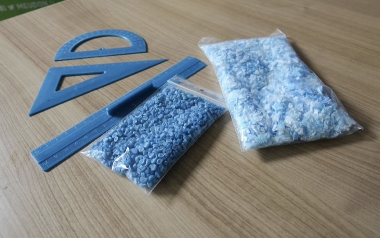 Plaxtil在此过程中会和另两家公司合作,一家负责废弃物的回收,另一家负责使用残疾人雇员将口罩中的金属条剔除。Plaxtil则负责将剩余部分转化成球珠状聚合物,然后生产成三角尺、直尺和量角器。预计每月可收集10万只口罩。