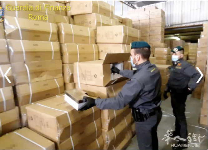 意大利《华人街》2021年5月21日罗马消息:罗马,在Esquilino地区发现一个假货市场:价值200万营业额的生意被破坏,7名中国人被控诉。 税务警察在罗马查获约13万只仿冒品牌的鞋子,并对7人提起控诉。